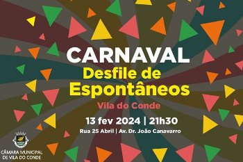 Já em Vila do Conde, esta noite, sai à rua o Desfile de Espontâneos. O cortejo é na avenida Dr. João Canavarro e rua 25 de Abril, em pleno centro da cidade e promete imaginação e muita criatividade. Todos podem juntar-se à festa, basta prepararem as suas fantasias e aparecerem. É a partir das 21h30.