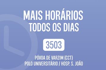 Indo de encontro aos desejos dos utentes, a linha 3503 da rede Unir iniciou outubro com um reforço da frequência. Trata-se da ligação do autocarro que faz o percurso entre o Centro Coordenador de Transportes da Póvoa de Varzim e a zona do Pólo Universitário / Hospital de São João (Porto). Aos dias úteis a frequência passa a ser de 30 em 30 minutos, enquanto aos fins de semana a circulação passa a ser a cada hora (em vez das atuais 7 viagens). Os horários foram alargados e começam mais cedo, prolongando-se até perto das 21h.