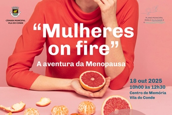 Este sábado, o Centro de Memória de Vila do Conde recebe o workshop “Mulheres on Fire – a aventura da Menopausa”, uma iniciativa promovida pela Câmara Municipal no âmbito do Plano Municipal para a Igualdade e Não Discriminação. A sessão, que decorre entre as 10h00 e as 12h30, será dinamizada pela Associação Cornucópias e contará com a participação de especialistas nas áreas da medicina, nutrição e fisioterapia pélvica. O objetivo é informar, esclarecer e promover o bem-estar das mulheres, abordando de forma aberta e descontraída os desafios e cuidados associados à menopausa. A participação é gratuita, mas sujeita a inscrição prévia através do e-mail Este endereço de email está protegido contra piratas. Necessita ativar o JavaScript para o visualizar..