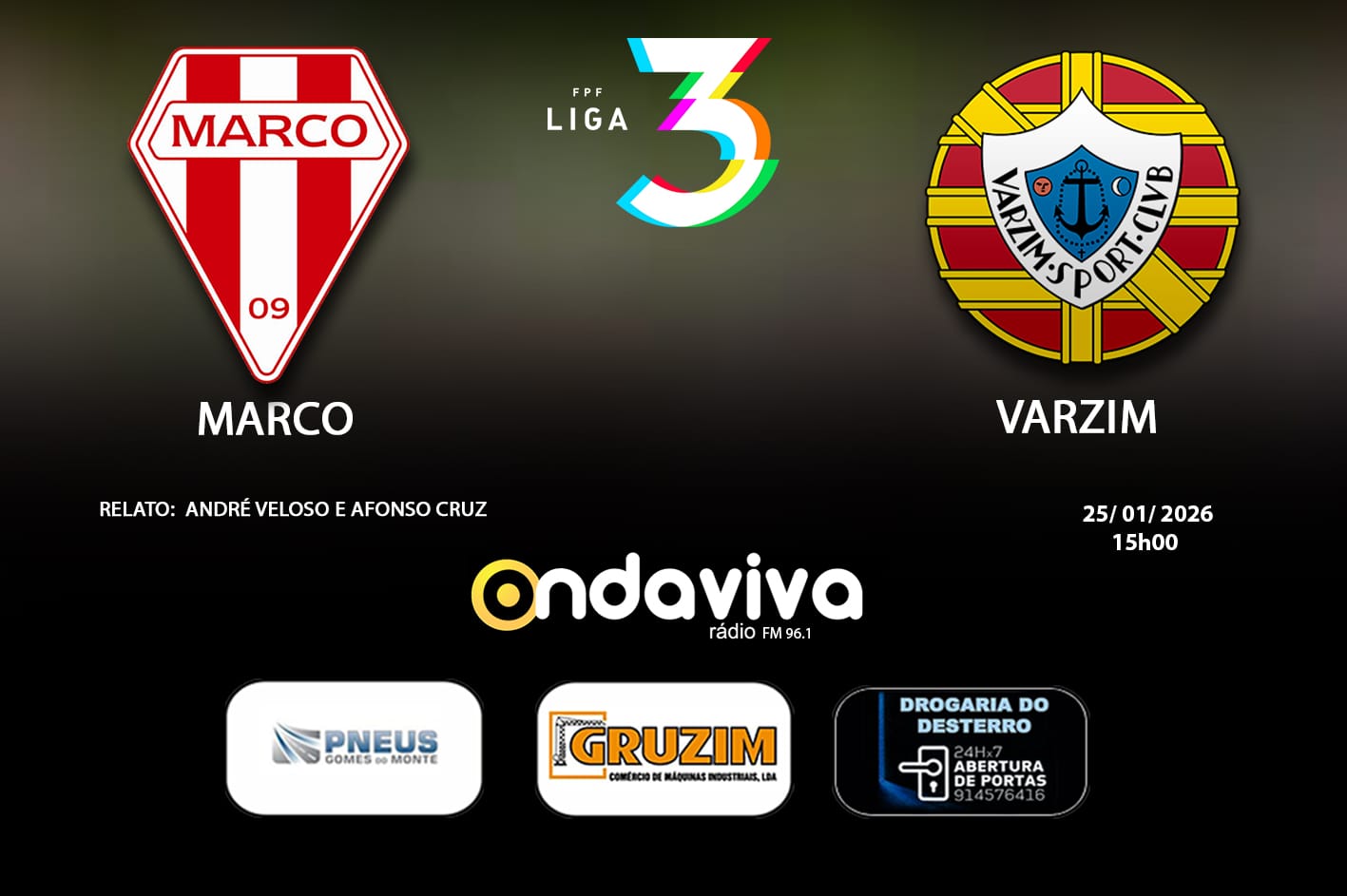 O Varzim decide esta tarde, no terreno do Marco 09, o futuro na Liga 3. Uma vitória garante logo a fase de subida, mas outro resultado deixa tudo dependente do que fazem os adversários diretos, podendo implicar a queda na fase da manutenção. Nuno Capucho reconheceu que se trata da última oportunidade para assegurar o primeiro objetivo do clube e assegurou que o plantel está pronto para dar uma alegria aos mais de 500 poveiros que deverão estar na bancada. Vão viajar 6 autocarros lotados e muitos adeptos seguirão de automóvel. O treinador varzinista prometeu que a equipa vai jogar para ganhar e sem pensar nas contas e no que se passa nos outros campos. Capucho revelou ainda que os jogadores estão bastante confiantes e dá-lhes mérito por terem sempre acreditado mesmo quando alguns já duvidavam. A Onda Viva vai acompanhar o Marco 09 x Varzim a partir das 15h com relato de André Veloso e Afonso Cruz.