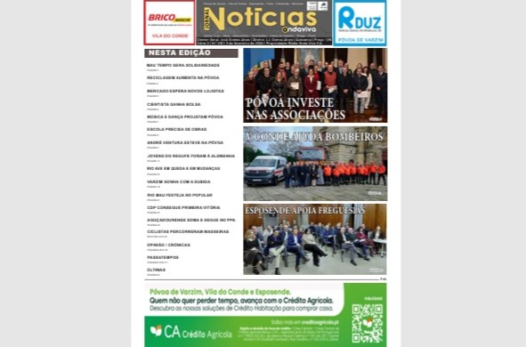 Já está à venda e a caminho dos assinantes mais uma edição do jornal Notícias Onda Viva. O número 281 contém as habituais 32 páginas a cores e resume o essencial da atualidade local e regional que é também acompanhada diariamente nesta rádio. Na capa, há três temas em destaque: o investimento municipal nas associações poveiras, a ajuda camarária aos bombeiros vilacondenses e o apoio às juntas esposendenses. No interior pode conferir dezenas de assuntos que contam o que mais relevante aconteceu e também o que vai suceder na região, além das habituais crónicas e artigos de opinião. Se não é assinante e não recebe o jornal em casa, pode já encontrá-lo em dezenas de quiosques ou papelarias. Já sabe também não faltam os indispensáveis passatempos e curiosidades para se divertir neste fim de semana.